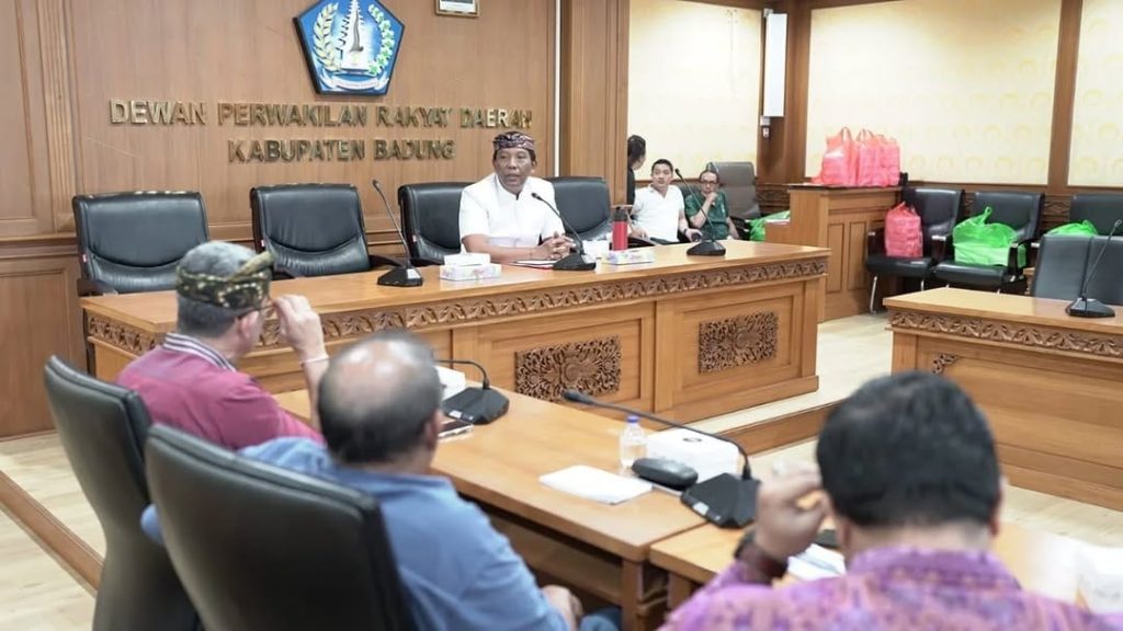 Ketua DPRD Kabupaten Badung, I Gusti Anom Gumanti, menerima audiensi jajaran PT Jamkrida Bali Mandara (Perseroda) dalam rangka penyampaian laporan kondisi awal masa kepengurusan serta kinerja terkini perusahaan. Audiensi tersebut berlangsung pada Jumat (6/2) di Kabupaten Badung.
